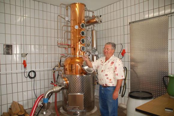 In der hauseigenen Brennerei werden alle feinen Destillate selbst gebrannt. Die Herstellung von Edeldestillaten setzt viel Erfahrung und Fingerspitzengefühl voraus. Aber auch die sachgerechte Pflege der Obstgärten ist wichtig, denn nur reife Früchte bringen feine Brände. Das Obst muss gesund sein, um gut ausreifen zu können, damit das nötige Aroma erreicht wird.